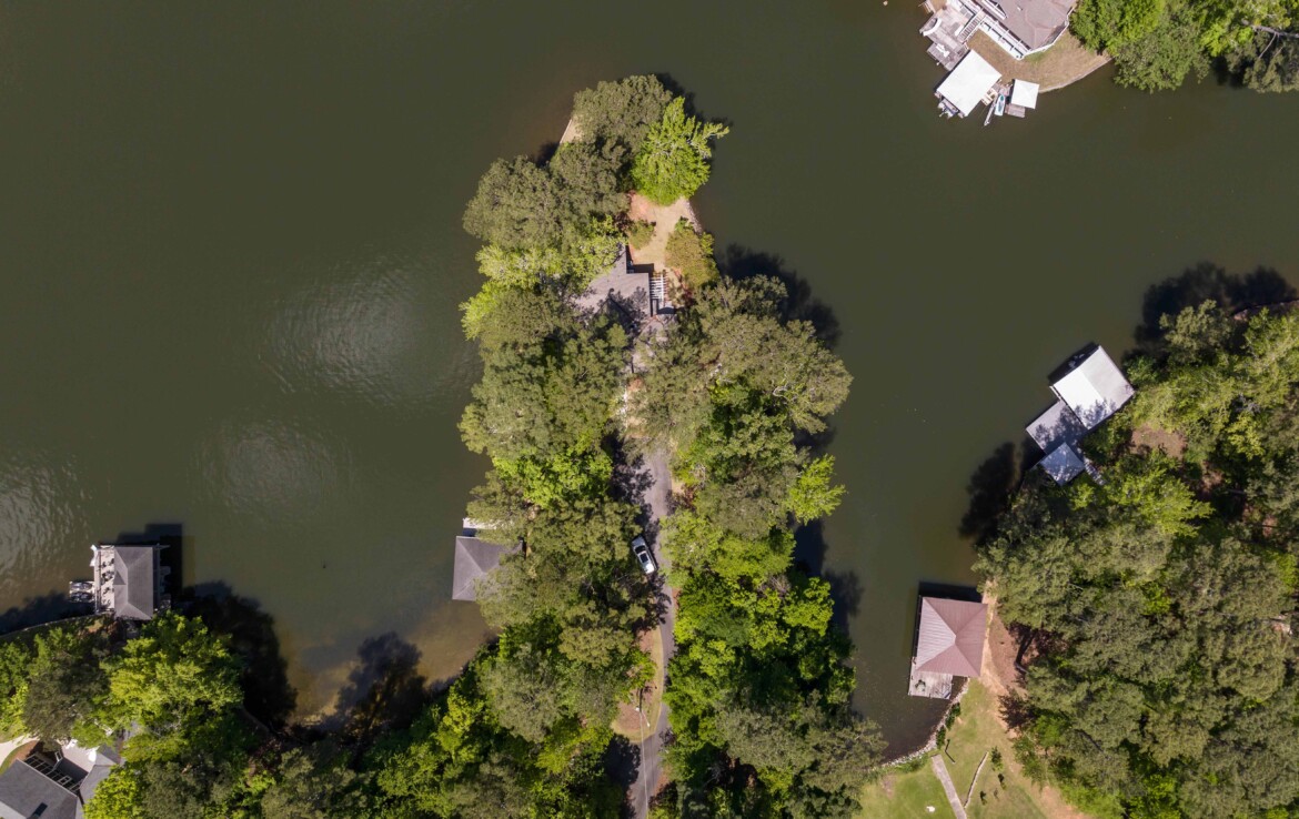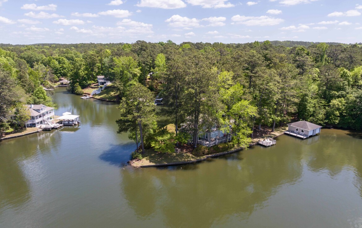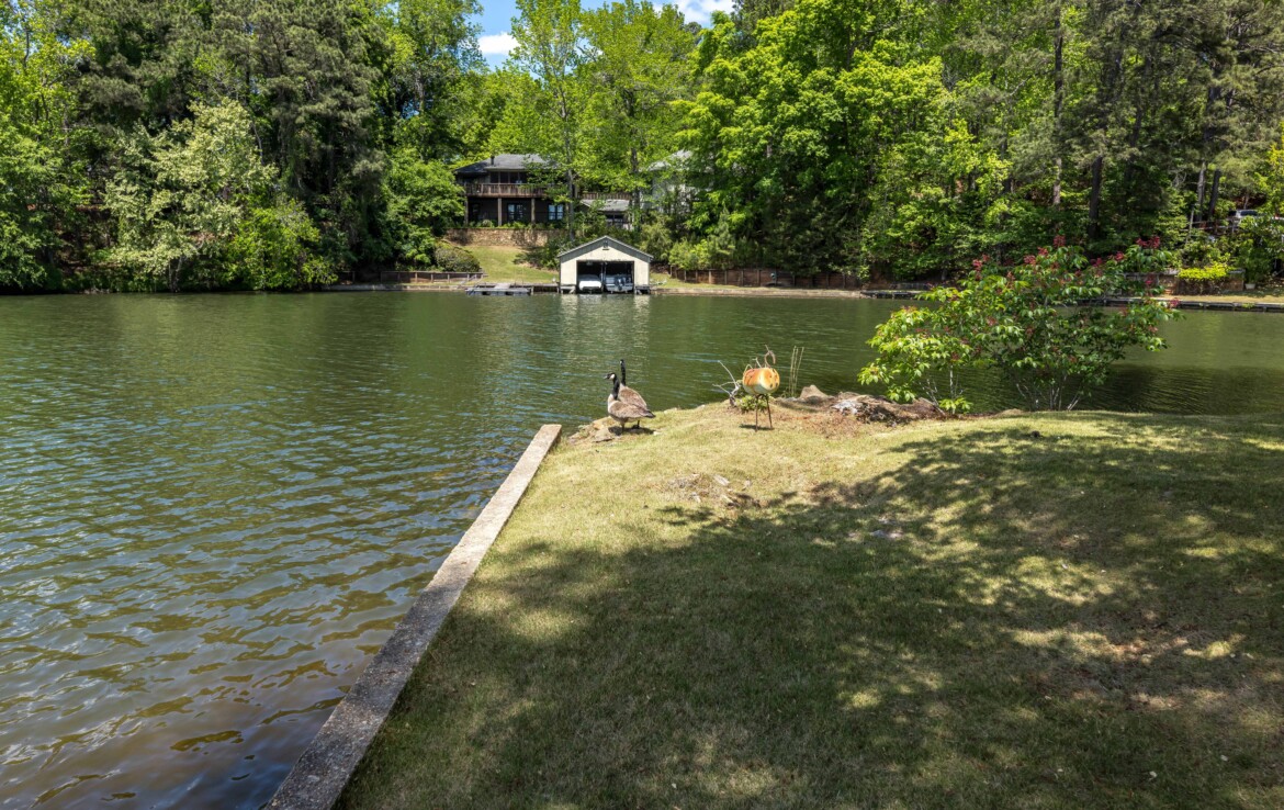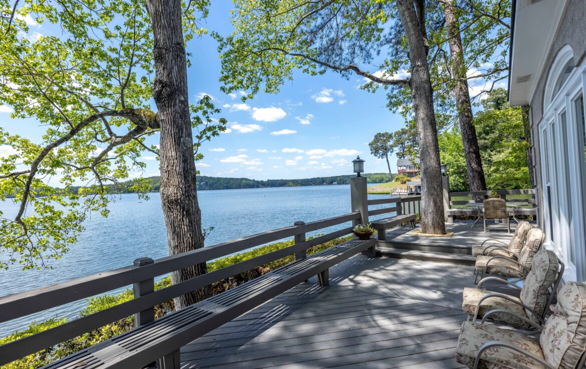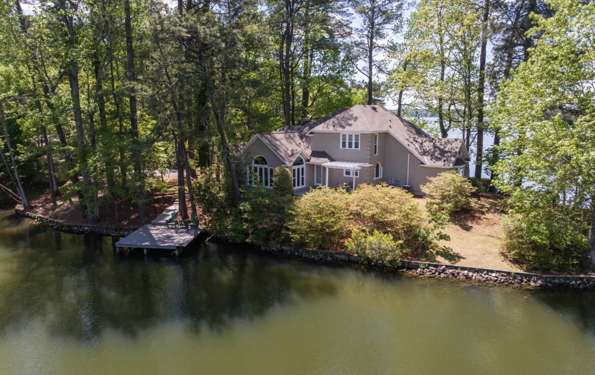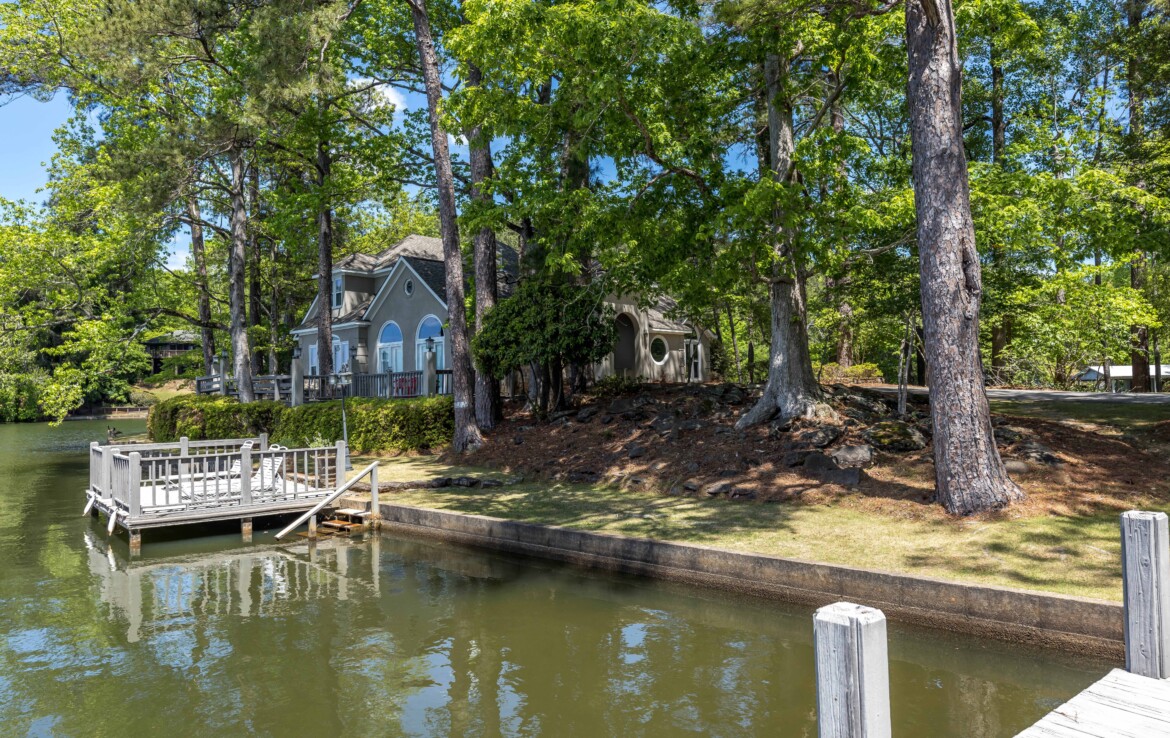 Waterfront home on a 1.34-acre private peninsula with stunning big water views! This spacious 4-bedroom, 2.5-bath home features a fully renovated kitchen with a large breakfast island, double ovens, stainless steel appliances, LVP flooring, and a pantry. The bright, open living room offers a stone fireplace and built-in cabinetry. The main-level primary suite is filled with natural light and showcases beautiful water views, an oversized ensuite with dual vanities, a separate shower and soaking tub, and his-and-hers walk-in closets. The main level also includes a guest bedroom and half bath, while upstairs features two spacious guest rooms with a Jack-and-Jill bathroom. Outdoor living is just as impressive with an expansive deck overlooking the water, double boathouse, concrete seawall, private boat ramp, and two stationary docks—perfect for enjoying lake life to the fullest.
