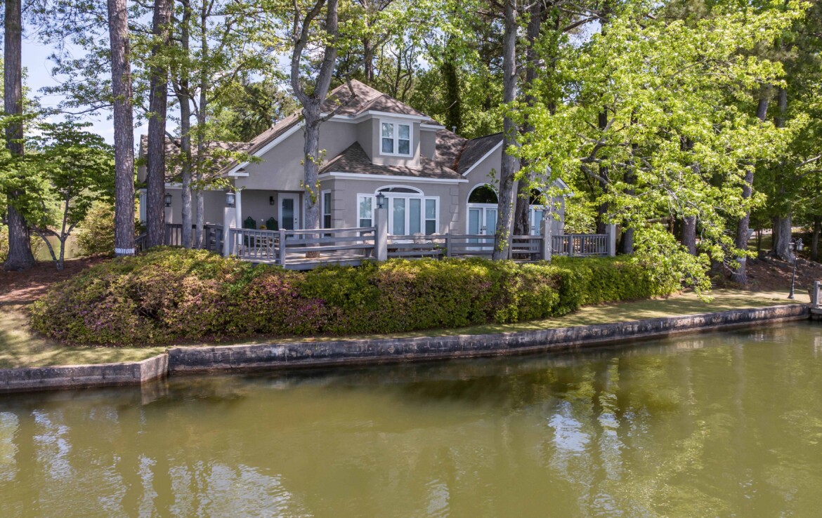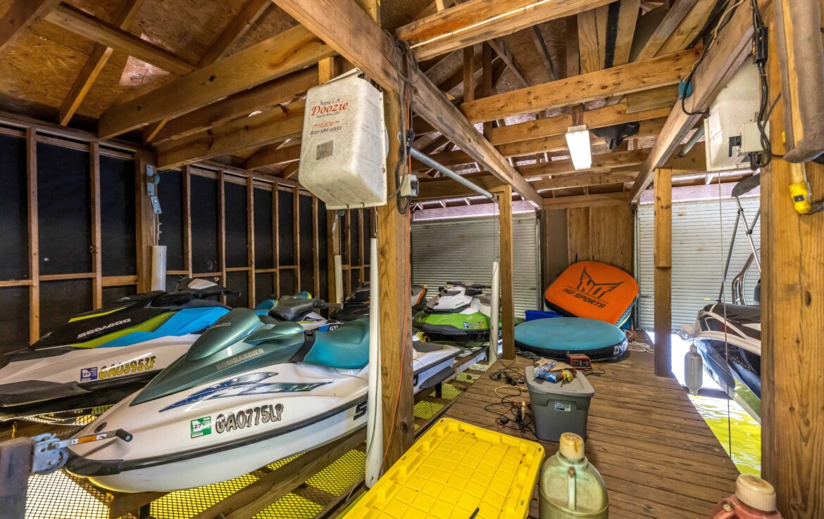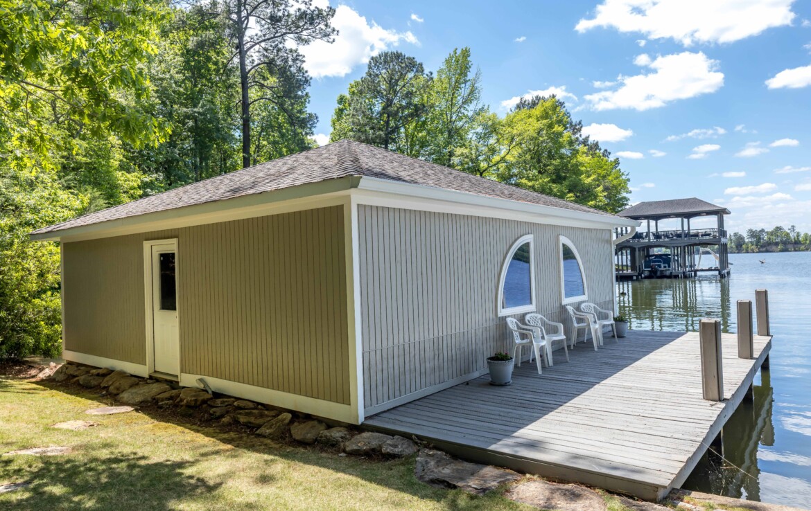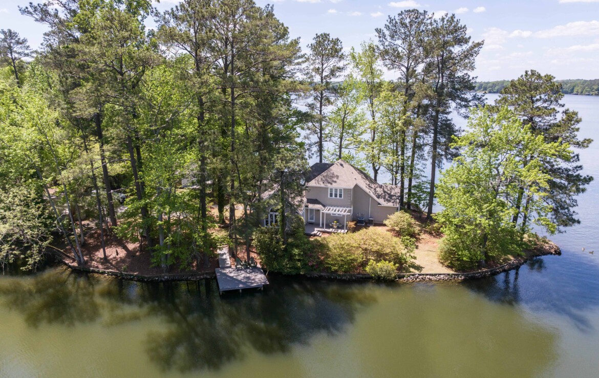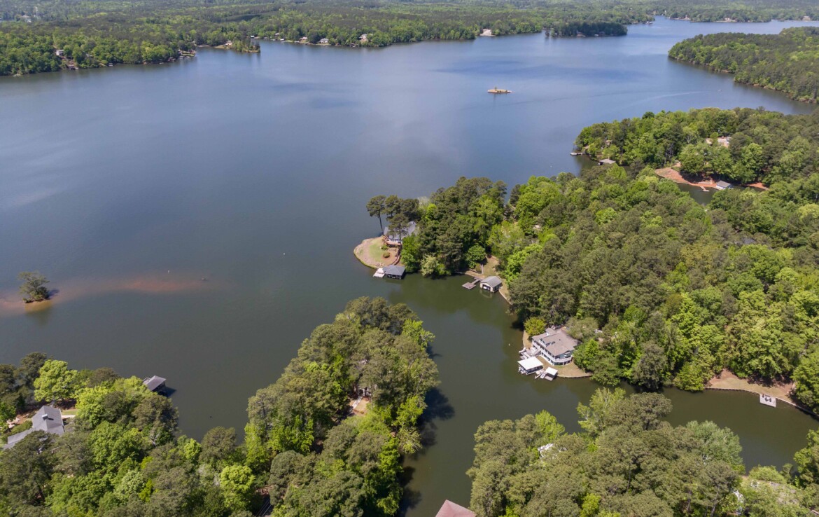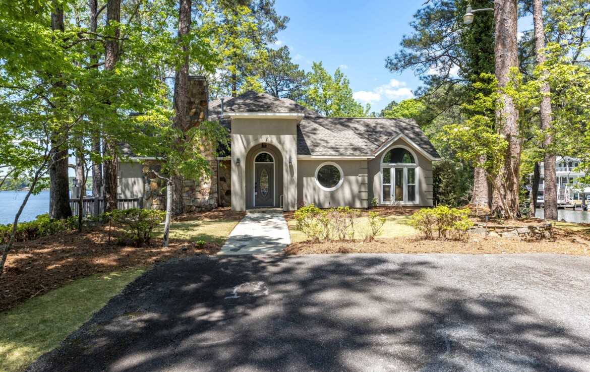 Waterfront home on a 1.34-acre private peninsula with stunning big water views! This spacious 4-bedroom, 2.5-bath home features a fully renovated kitchen with a large breakfast island, double ovens, stainless steel appliances, LVP flooring, and a pantry. The bright, open living room offers a stone fireplace and built-in cabinetry. The main-level primary suite is filled with natural light and showcases beautiful water views, an oversized ensuite with dual vanities, a separate shower and soaking tub, and his-and-hers walk-in closets. The main level also includes a guest bedroom and half bath, while upstairs features two spacious guest rooms with a Jack-and-Jill bathroom. Outdoor living is just as impressive with an expansive deck overlooking the water, double boathouse, concrete seawall, private boat ramp, and two stationary docks—perfect for enjoying lake life to the fullest.