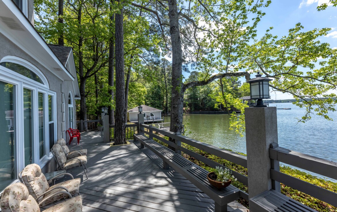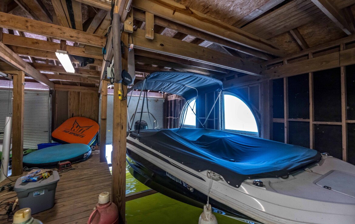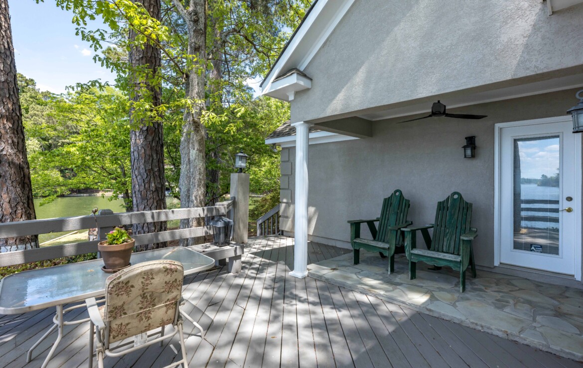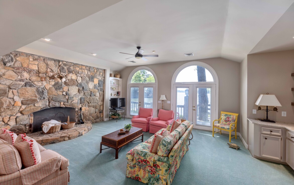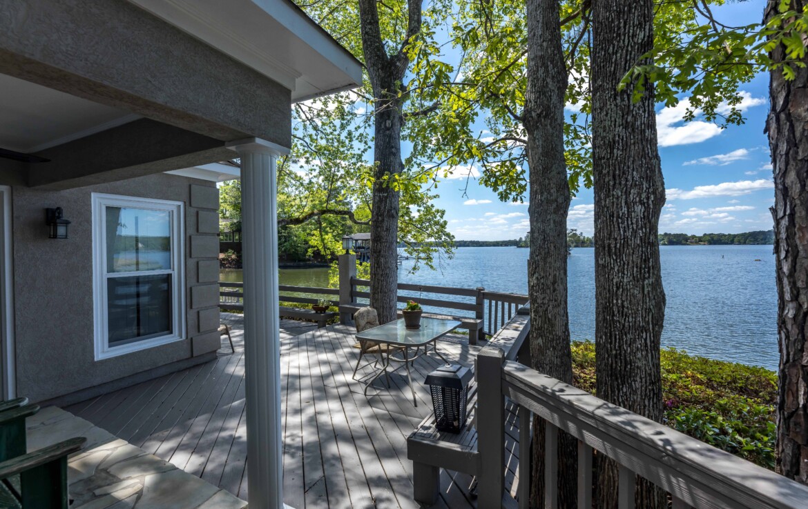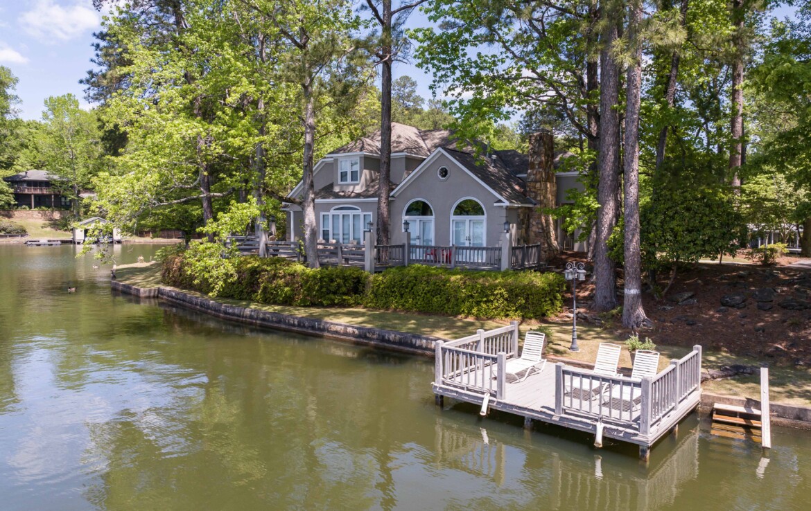 Waterfront home on a 1.34-acre private peninsula with stunning big water views! This spacious 4-bedroom, 2.5-bath home features a fully renovated kitchen with a large breakfast island, double ovens, stainless steel appliances, LVP flooring, and a pantry. The bright, open living room offers a stone fireplace and built-in cabinetry. The main-level primary suite is filled with natural light and showcases beautiful water views, an oversized ensuite with dual vanities, a separate shower and soaking tub, and his-and-hers walk-in closets. The main level also includes a guest bedroom and half bath, while upstairs features two spacious guest rooms with a Jack-and-Jill bathroom. Outdoor living is just as impressive with an expansive deck overlooking the water, double boathouse, concrete seawall, private boat ramp, and two stationary docks—perfect for enjoying lake life to the fullest.