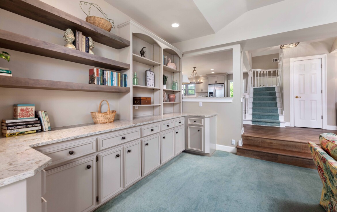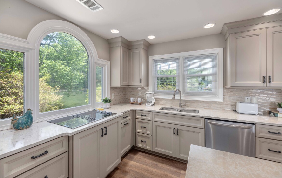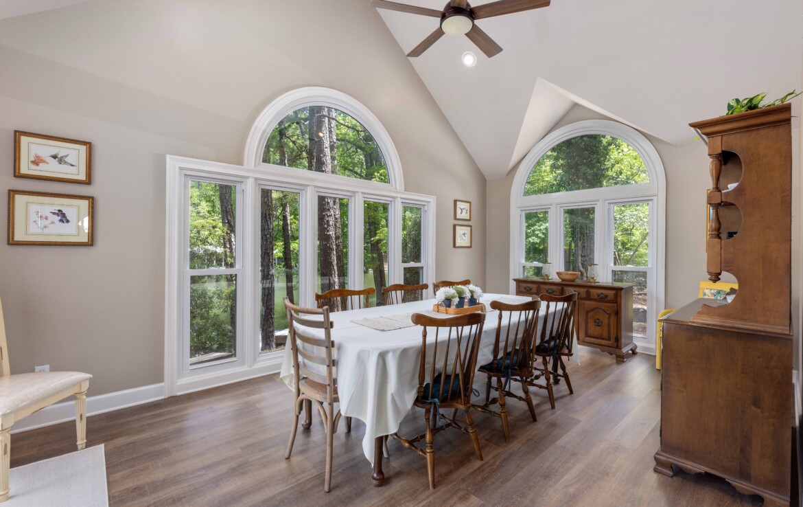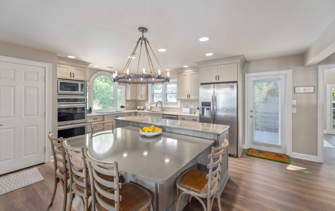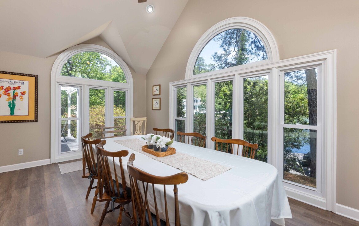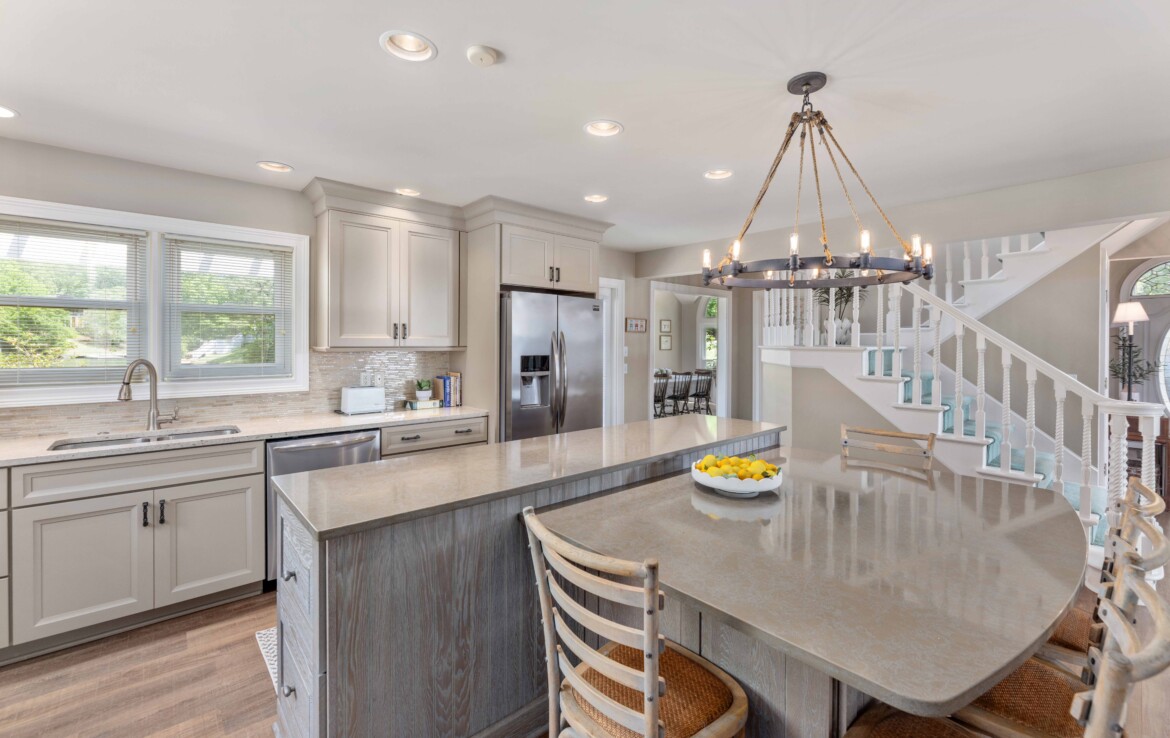 Waterfront home on a 1.34-acre private peninsula with stunning big water views! This spacious 4-bedroom, 2.5-bath home features a fully renovated kitchen with a large breakfast island, double ovens, stainless steel appliances, LVP flooring, and a pantry. The bright, open living room offers a stone fireplace and built-in cabinetry. The main-level primary suite is filled with natural light and showcases beautiful water views, an oversized ensuite with dual vanities, a separate shower and soaking tub, and his-and-hers walk-in closets. The main level also includes a guest bedroom and half bath, while upstairs features two spacious guest rooms with a Jack-and-Jill bathroom. Outdoor living is just as impressive with an expansive deck overlooking the water, double boathouse, concrete seawall, private boat ramp, and two stationary docks—perfect for enjoying lake life to the fullest.