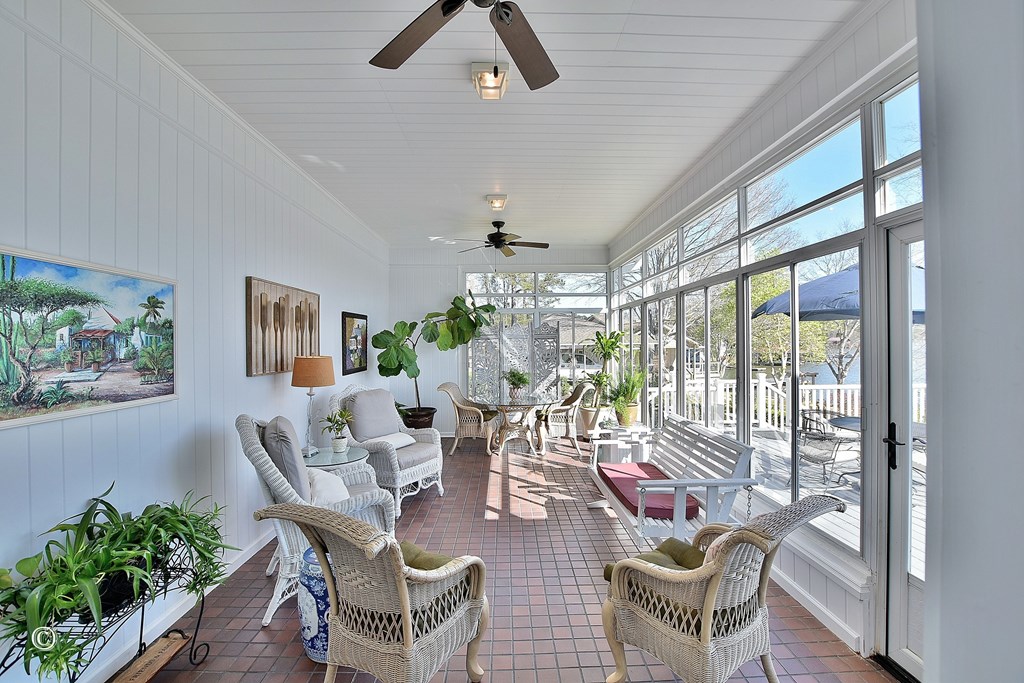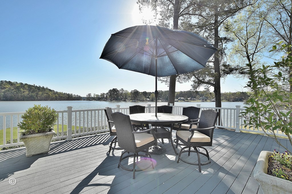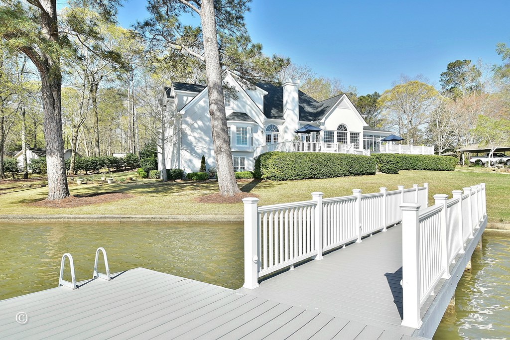 Enjoy big water views and exceptional space for living and entertaining in this impressive Lake Harding home on the Alabama side. Designed to capture the beauty of the water from multiple rooms, the home features an open and inviting floor plan with beautiful hardwood floors throughout the main level, crown molding, and expansive windows overlooking the lake. The spacious kitchen is well equipped with marble countertops, a large island, Sub-Zero refrigerator, stainless steel appliances, built-in ice maker, and garbage disposal. The kitchen flows seamlessly into a generous eat-in area with stunning lake views as well as a separate dining room, making it ideal for both everyday living and entertaining. The great room features French doors that open onto the freshly painted expansive deck overlooking the lake, creating the perfect indoor-outdoor gathering space. The main level includes a sunroom and two bedrooms, including the primary suite with a jetted tub, separate shower, and custom walk-in closet, offering a relaxing retreat. Upstairs offers three additional bedrooms, including two bedrooms connected by a Jack and Jill bath, as well as a private bedroom wing complete with its own den and full bath—ideal for guests or family. The finished basement provides even more living space with a den, office, bedroom, and full bath, offering flexibility for a guest suite, recreation area, or private retreat. Outside, enjoy the benefits of a level lake lot with a concrete seawall and a boathouse featuring two boat lifts and a storage room, along with Trex decking on the dock and boathouse for low-maintenance lake living. The two-car side-entry garage provides convenient access to the kitchen, and additional storage is available in the storage room beneath the home. This Lake Harding property offers the ideal combination of space, comfort, and lakefront lifestyle with stunning big water views.