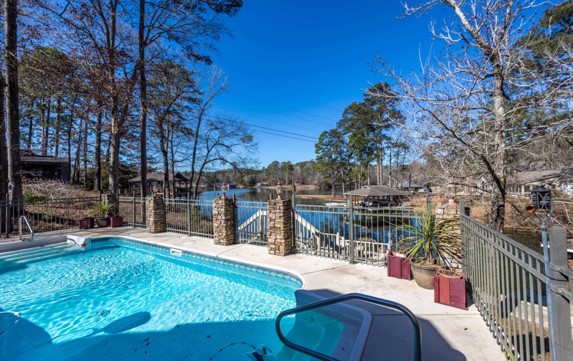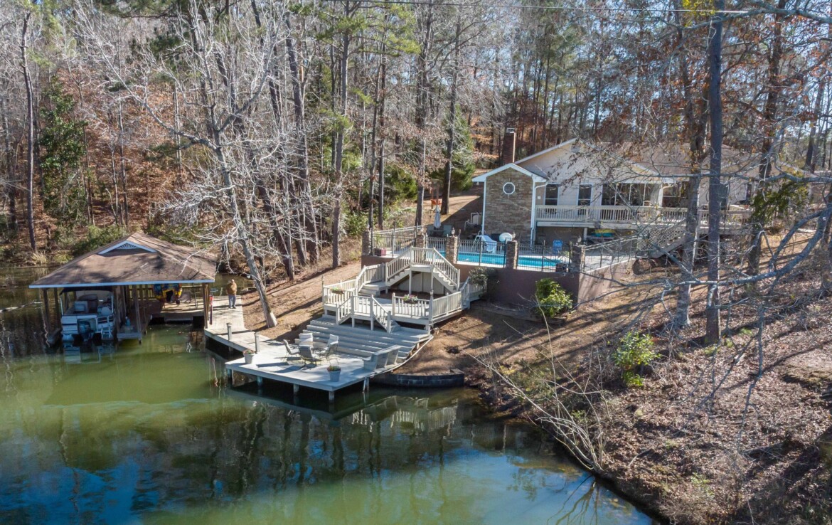 Experience exceptional lakeside living on beautiful Lake Harding! Situated on a level 1+ acre waterfront lot, this spacious 3,137+ sq ft home offers room for everyone and includes a full mother-in-law apartment with a private entrance, kitchen, and separate laundry. The main home was thoughtfully remodeled in 2006 and features an impressive 20′ x 22′ owner’s suite with a spa-inspired bath and an adjoining sewing or hobby room. Multiple living areas provide great flexibility and lead to a large screened porch overlooking the sparkling saltwater pool—ideal for relaxing or entertaining. Nestled in a quiet private cove, the property also includes a double boathouse, solid seawall, 3-car carport, and three 8′ x 10′ storage buildings for excellent storage options. Centrally located and convenient to Opelika, Auburn, and Columbus, this property delivers privacy, comfort, and the best of Lake Harding waterfront living.