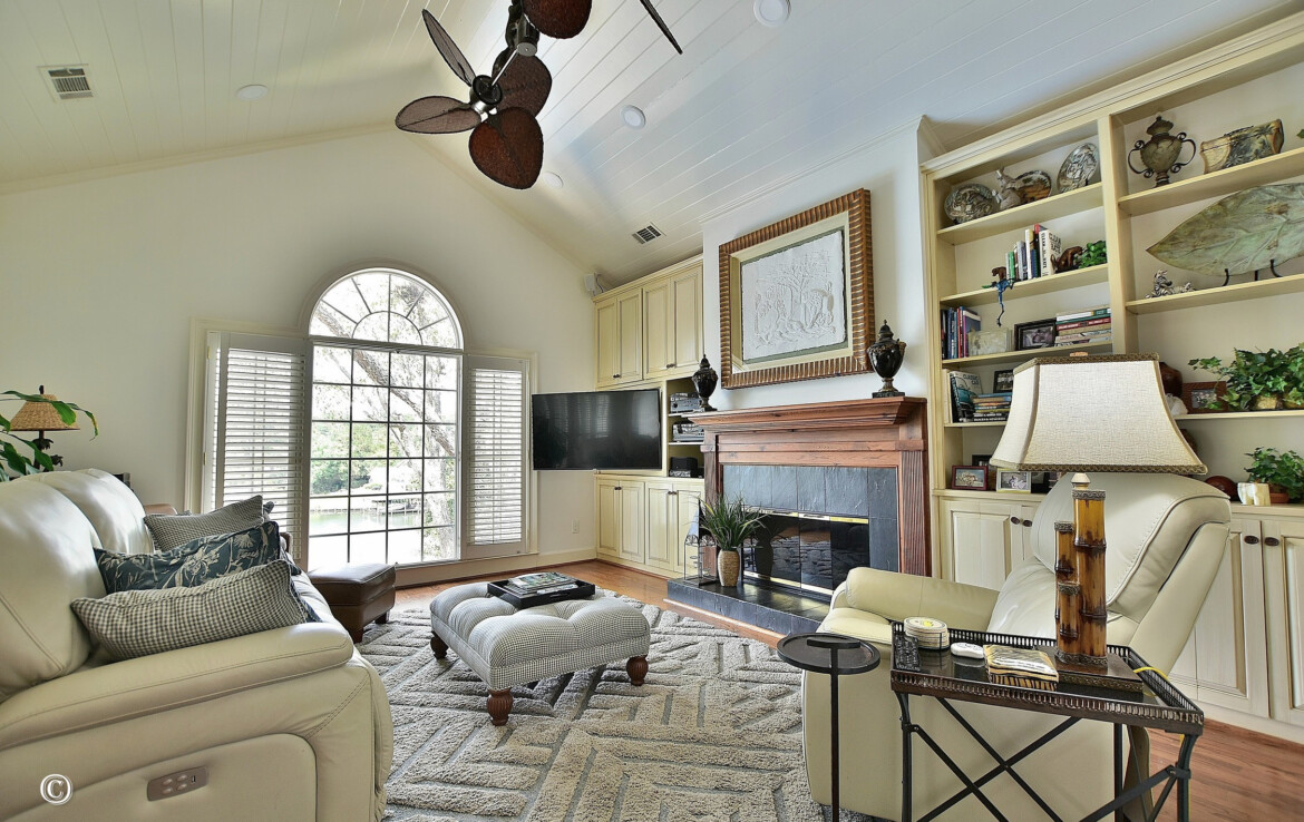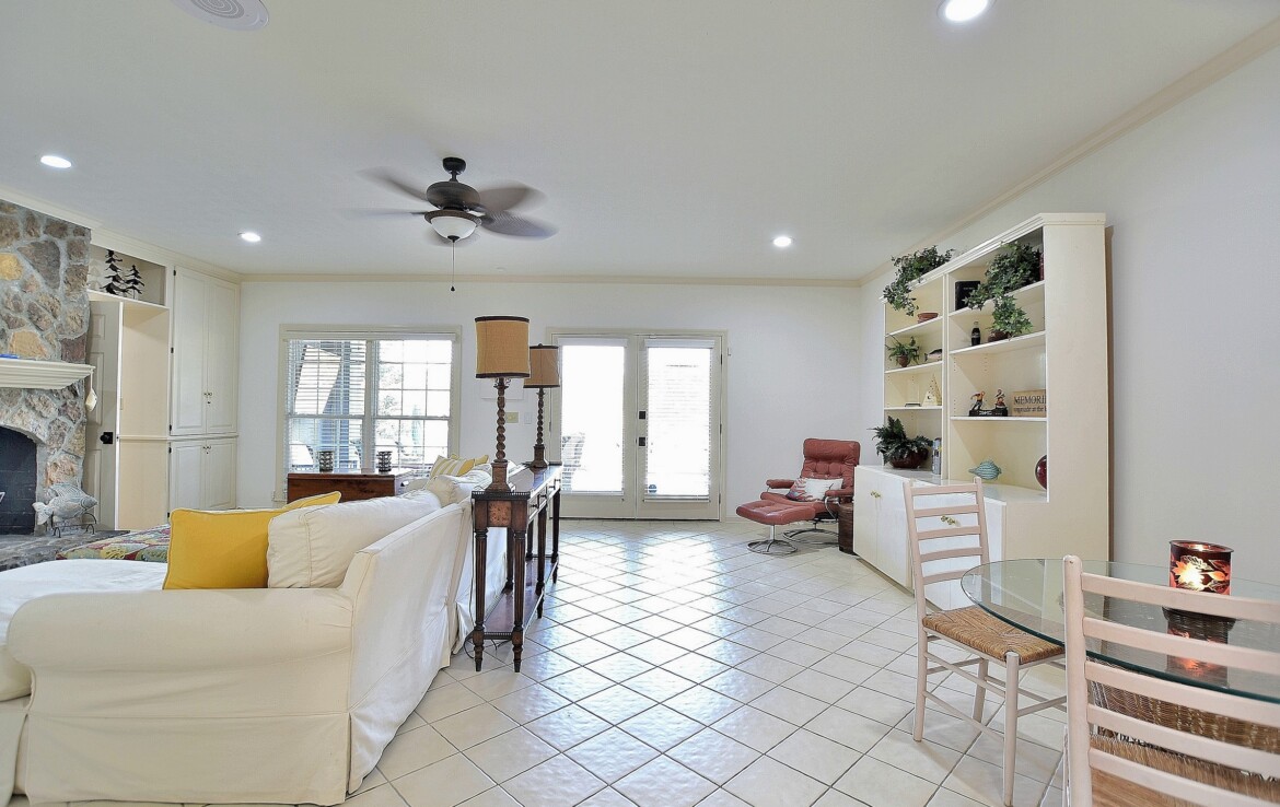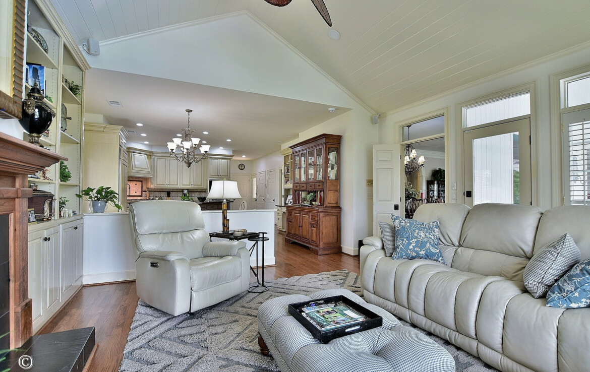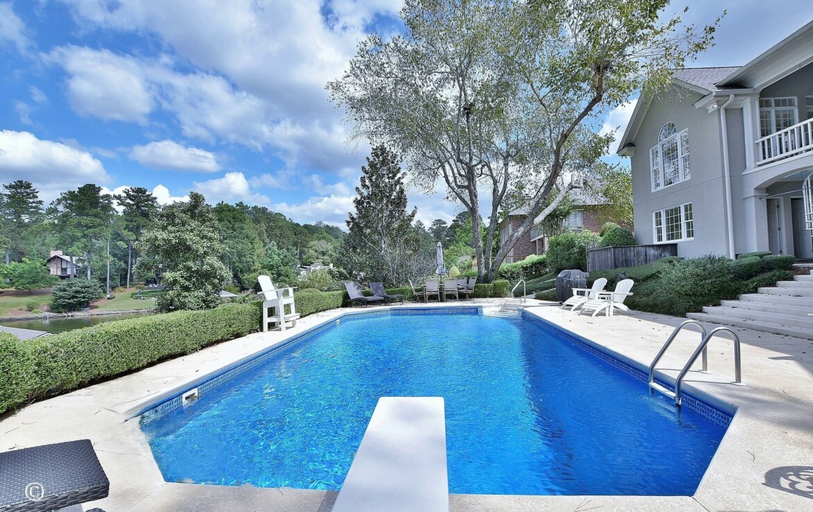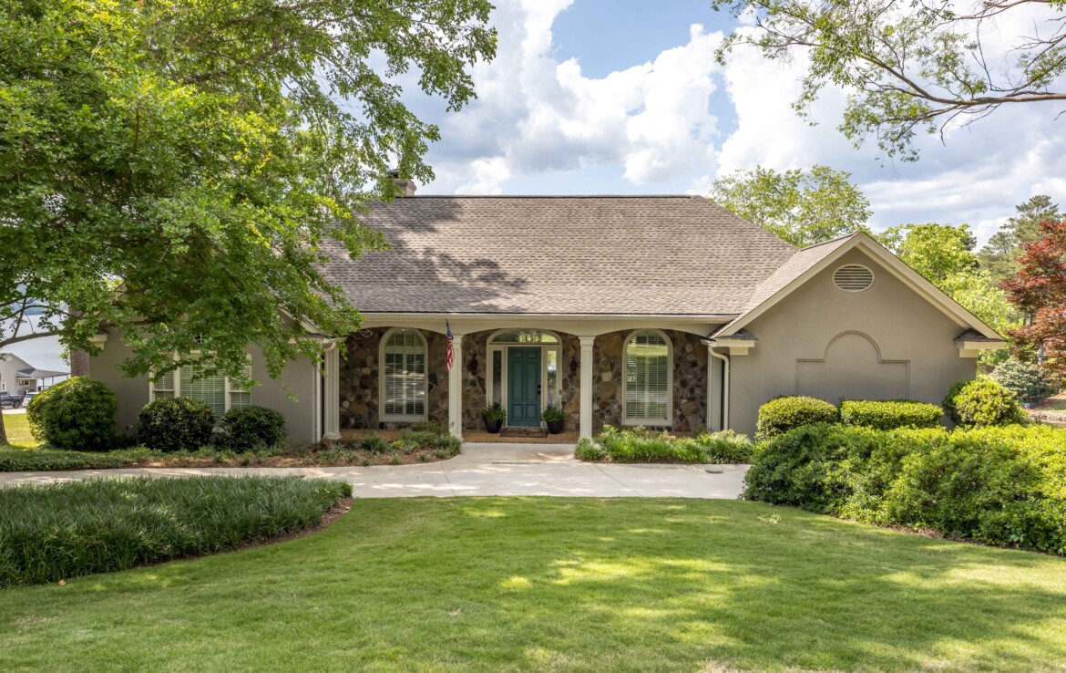 Exceptional Green Island waterfront residence offering breathtaking views of Lake Oliver in a prime, sought-after location. A gracious entry foyer opens to spacious living and dining areas, highlighted by a wall of windows with natural light and frame stunning lake views. French doors lead to a covered patio overlooking the water, creating seamless indoor-outdoor living. The updated kitchen features custom cabinetry, concrete countertops, high-end appliances, and a center island. An adjoining den with fireplace and built-ins provides a comfortable gathering space while enjoying panoramic lake views. Step onto the expansive covered porch overlooking the lake, saltwater pool, and beautifully manicured grounds—perfect for relaxing or entertaining. The main-level owner’s suite is a private retreat with lake views, custom ceiling details, hardwood floors, and a renovated luxury bath with custom cabinetry, soaking tub, and custom walk-in shower. An additional main-level bedroom with adjoining bath offers flexibility for guests or a home office. The lower level provides additional living space, including a large family room with fireplace that opens to a patio, pool, and outdoor entertaining area complete with a wet bar and half bath. Two spacious bedrooms with built-in cabinetry share a Jack-and-Jill bath, and a dedicated home gym or exercise room adds versatility. Additional features include approximately 5,127 heated and cooled square feet, four bedrooms, three full baths, and two half baths. The home showcases hardwood floors, crown molding, plantation shutters, three fireplaces, three living areas, and a large wet bar ideal for entertaining. Outdoor amenities include 146 feet of pristine water frontage, a new concrete seawall, saltwater swimming pool, covered patio and veranda with outdoor half bath and bar, single-bay enclosed boathouse, and stationary dock. A rare opportunity to enjoy refined lakefront living in one of the area’s most desirable communities!