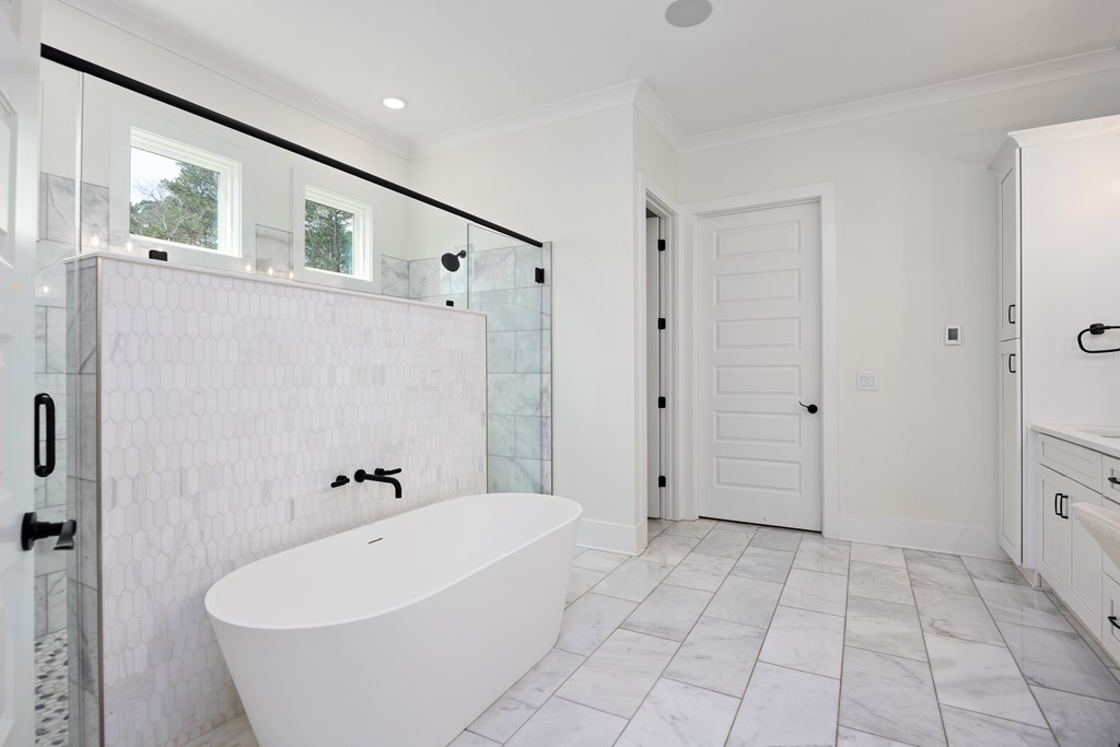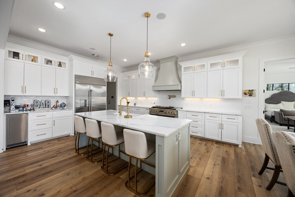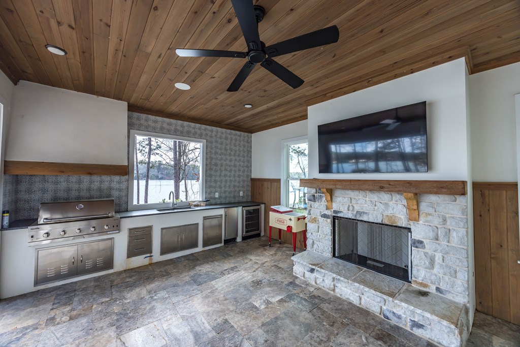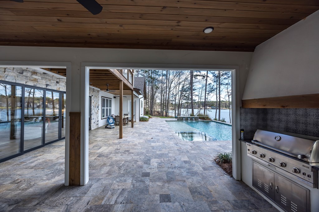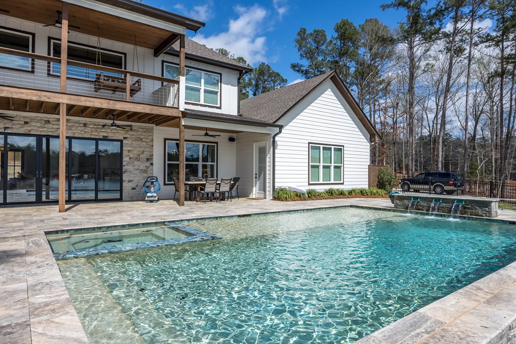 This one of a kind property offers you 22.7 deeded acres on Lake Harding in Harris County with a one year old custom built home on the lake. You are welcomed with stone pillars at the driveway that leads you down to the lake house. You have a three car oversized garage with ample storage along with ample parking for your guests. Walking through the front door you enter into the foyer and then the great room with 20′ + ceilings with large windows looking out to the lake. The open kitchen is to your left which features granite counters plus an island with a farm house style sink. All top end stainless appliances to include side by side refrigerator, dishwasher, microwave, oven and soft ice maker plus a wine cooler. There is even a butlers kitchen off of the kitchen with ample storage and a large laundry room adjacent and then a full bathroom for guests. All the rest of the ceilings are 10′ with crown molding. On the main level there are two primary bedrooms both with large nice bathrooms….The larger primary bedroom has a large bathroom with a double shower and a stand alone tub and a serious walk-in closet. Upstairs has two other bedrooms and an office that could b e a bedroom plus a large entertainment room with a wet bar with a wine cooler. Opening the sliding glass doors that open all the way you walk out to the pool area that has a large covered back area plus to the right is a covered outdoor cooking area with stainless grill, wine cooler, etc.. plus a half bathroom. The pool is a Gunite top of the line pebble tech finish with a Walk down to the boathouse to your slip for your pontoon and one for your jet skis, both with lifts included. If you are looking for the perfect family get-away or a full time residence, this is made for you and your family.