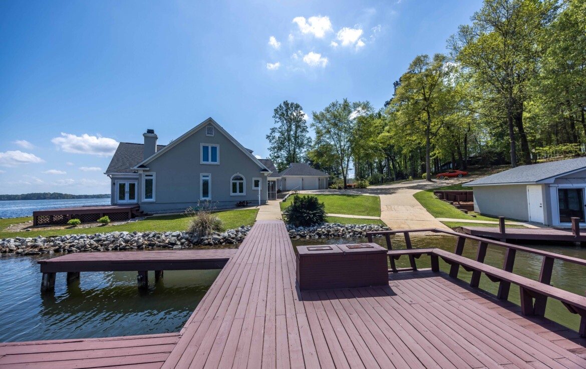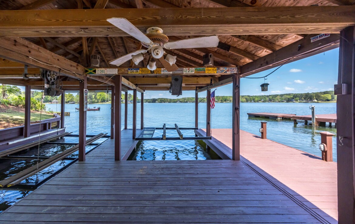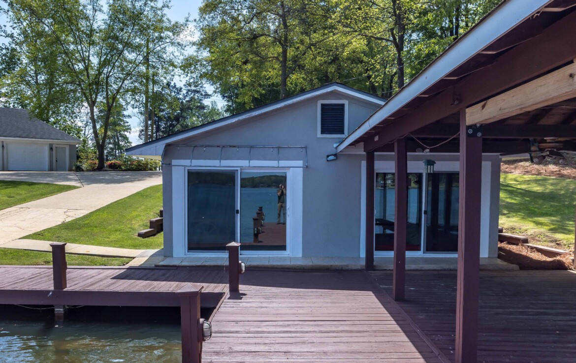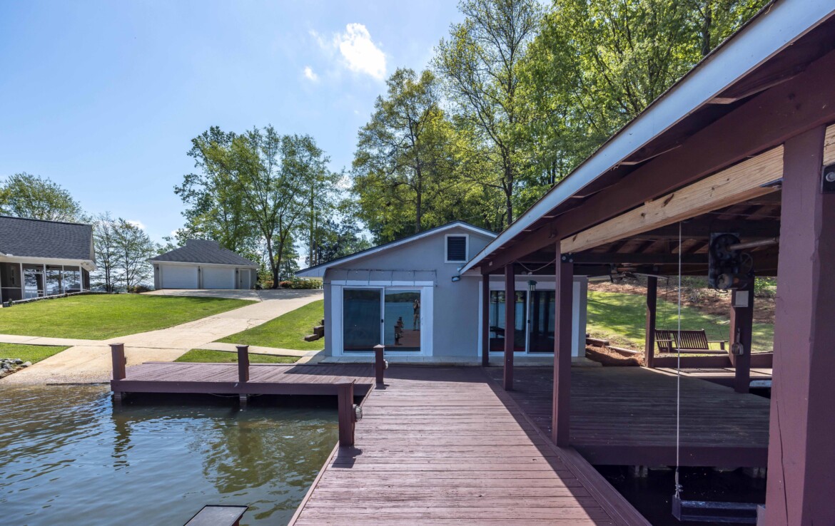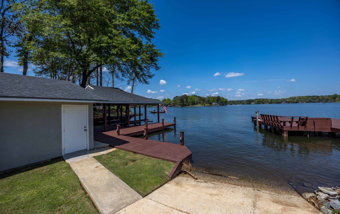 Stunning Waterfront Retreat on Lake Harding! Situated on approximately 1 acre with an impressive 482 feet of waterfrontage, this exceptional property offers breathtaking views and the ultimate lake lifestyle. Designed with an open floor plan, the home captures panoramic lake views from nearly every room, creating a bright and inviting atmosphere perfect for both everyday living and entertaining. Enjoy the outdoors from the spacious wooden deck or relax on the screened porch while taking in the spectacular scenery. Outdoor living is exceptional with a large screened patio overlooking the lake, double boathouse, stationary dock, floating dock with boat slip, boat ramp, and a lakeside clubhouse—perfect for entertaining. Additional features include a detached two-car garage with storage and a fenced area for pets. A rare opportunity to enjoy lakefront living with space, privacy, and breathtaking views!