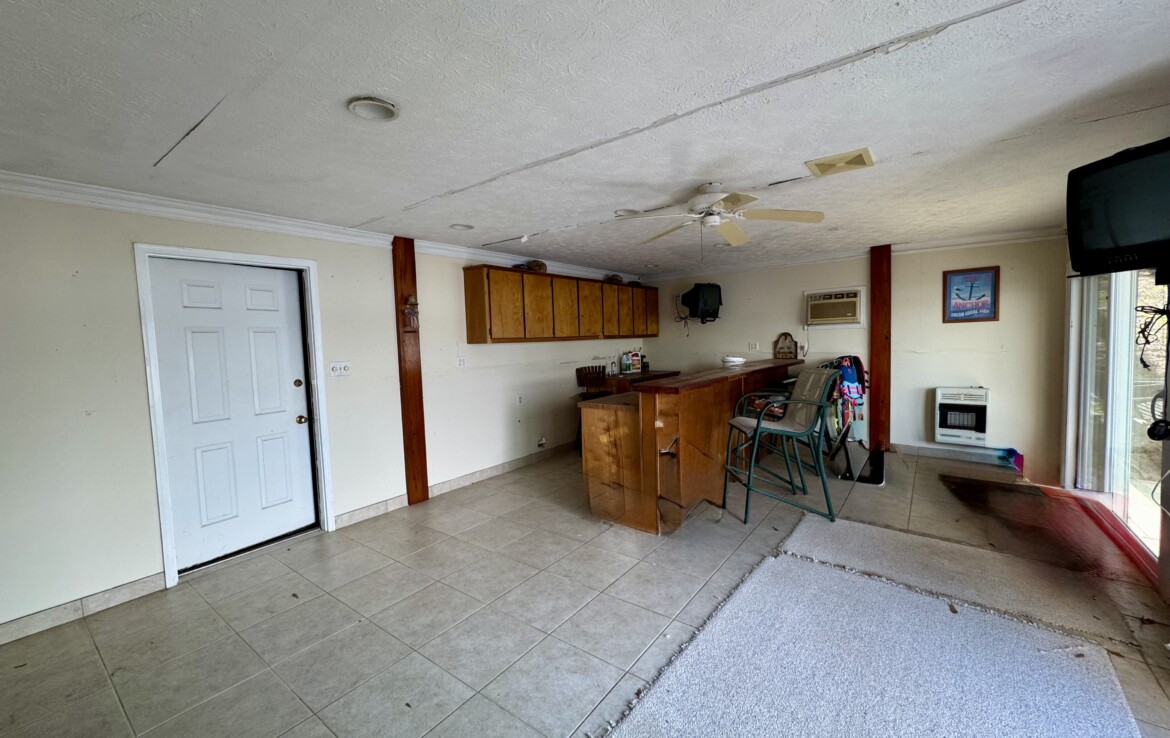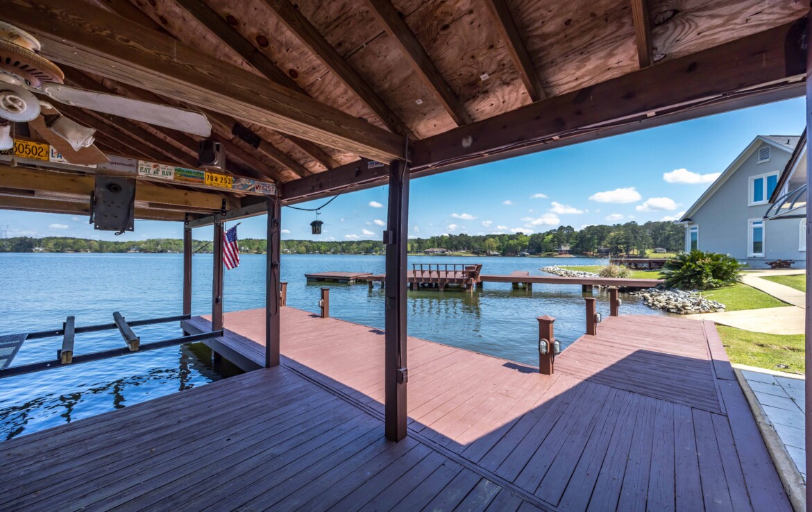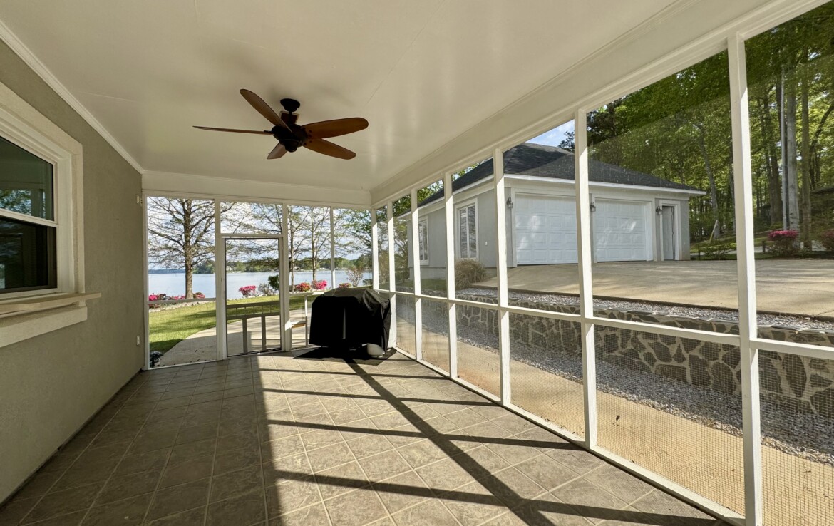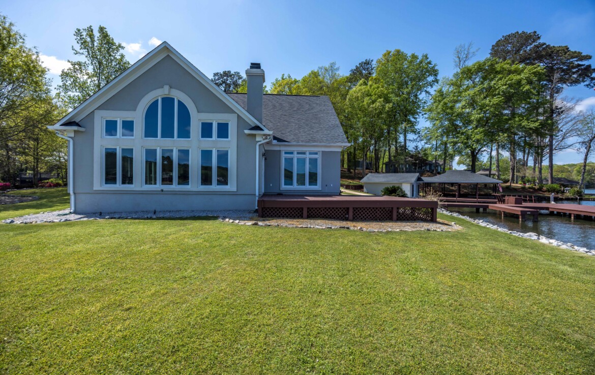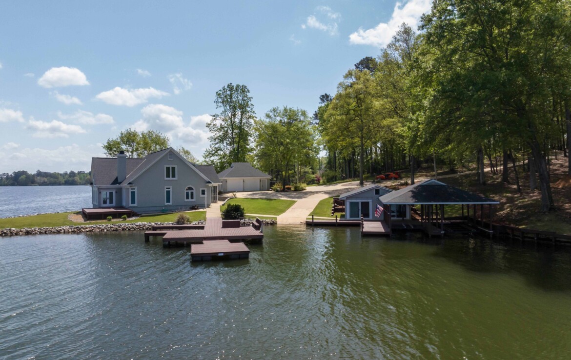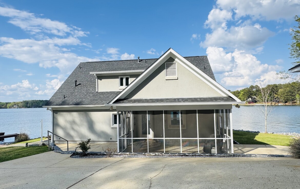 Stunning Waterfront Retreat on Lake Harding! Situated on approximately 1 acre with an impressive 482 feet of waterfrontage, this exceptional property offers breathtaking views and the ultimate lake lifestyle. Designed with an open floor plan, the home captures panoramic lake views from nearly every room, creating a bright and inviting atmosphere perfect for both everyday living and entertaining. Enjoy the outdoors from the spacious wooden deck or relax on the screened porch while taking in the spectacular scenery. Outdoor living is exceptional with a large screened patio overlooking the lake, double boathouse, stationary dock, floating dock with boat slip, boat ramp, and a lakeside clubhouse—perfect for entertaining. Additional features include a detached two-car garage with storage and a fenced area for pets. A rare opportunity to enjoy lakefront living with space, privacy, and breathtaking views!
