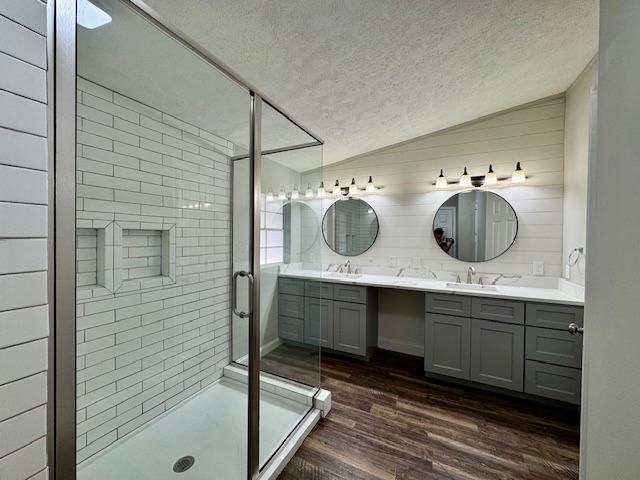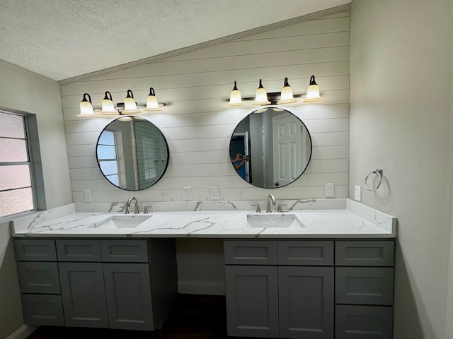 The luxurious renovated master suite offers double vanities and a glass shower for a spa-like retreat.