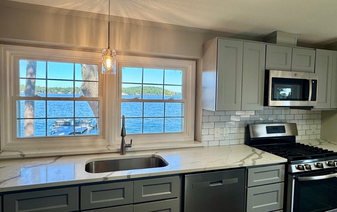 This updated lakefront home is perfectly situated near the end of a point on a west-facing lot, offering stunning big water views and unforgettable sunsets. Enjoy outdoor living with your own beachfront area, deck, boat ramp, and stationary dock—the ultimate lake lifestyle package.